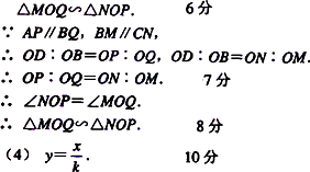 (3)ÈôµãOΪֱÏßBDÉÏÈÎÒâÒ»µã(²»ÓëµãB¡¢DÖØºÏ)£¬ÉèOD¡ÃOB£½k£¬PN£½x£¬MQ£½y£¬ÔòyÓëxÖ®¼äµÄº¯Êý¹ØÏµÊ½Îª________£®