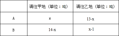 | 调往甲地(单位:吨) | 调往乙地(单位:吨) | |