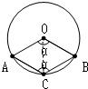 分析:连接OC,从而得出∠AOC=∠BOC,∠ACO=∠BCO,再由四边形OACB是菱形,得出AO=BO=BC=AC,又知道点A、C、B在⊙O上,从而得出AO=CO=AC=BC,△AOC是等边三角形,求出∠ACO=60°,再由∠ACB=2∠ACO求出答案即可.