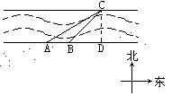 为了加快城市经济发展,某市准备修建一座横跨南北的大桥.如图10所示,测量队在点A处观测河对岸水边有一点C,测得C在北偏东60°的方向上,沿河岸向东前行30米到达B处,测得C在北偏东45°的方向上,请你根据以上数据帮助该测量队计算出这条河的宽度(结果保留根号)。![]()