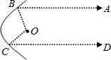 如图是一汽车探照灯纵剖面,从位于O点的灯泡发出的两束光线OB,OC经过灯碗反射以后平行射出,如果