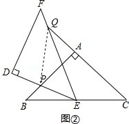 (1)如图①,当点Q在线段AC上,且AP=AQ时,求证:△BPE≌△CQE;