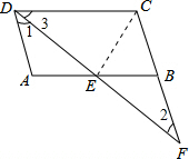 ∴DE=FE,即点E是DF的中点,∠1=∠2.