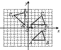 | 方格纸中的每个小方格都是边长为1个单位的正方形,在建立平面直角坐标系后,△ABC的顶点均在格点上,点C的坐标为(4,-1)。 (1)把△ABC向上平移5个单位后得到对应的△A1B1C1,画出△A1B1C1,并写出C1的坐标; (2)画出△A1B1C1绕点O逆时针旋转90。后的△A2B2C2,并求点C1旋转到C2所经过的路线长。 |