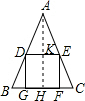 分析:首先过点A作AH⊥BC于点H,由三角形的中位线的性质,可求得BC的长,又由DEFG为正方形,易求得AH的长,然后由勾股定理求得AC的长.