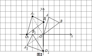 (2)根据旋转的性质分别作出点A1,B1,O1分别绕原点O逆时针旋转90°得到的对应点A2,B2,O2,从而得到△A2O2B2.