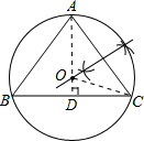 已知:如图,△ABC中,AB=AC=5,BC=6.用尺规作图作出△ABC的外接圆⊙O,写出作法;并求出⊙O的半径.