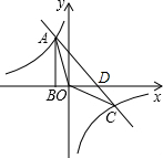 分析:(1)先根据反比例函数的图象所在的象限判断出k的符号,再由△ABO的面积求出k的值,进而可得出两个函数的解析式;