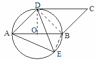 如图,四边形ABCD是平行四边形,以AB为直径的⊙O经过点D,E是⊙O上一点,且∠AED=45°。