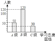 (2)由(1)可知:C级人数为:200-120-50=30人,将图①补充完整即可;