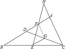 (2)连接FG,易证△FGE是等腰三角形,所以∠GFE=∠GEF,再根据平行线的性质以及对顶角相等可证明∠H=∠AFE,进而可得:AH=AF,