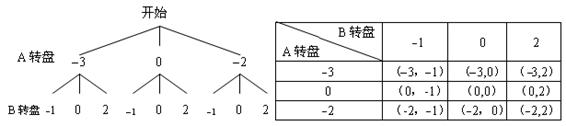 Èçͼ£¬A¡¢BÁ½¸öתÅ̾ù±»Æ½¾ù·Ö³ÉÈý¸öÉÈÐΣ¬·Ö±ðת¶¯AÅÌ¡¢BÅ̸÷Ò»´Î£®×ª¶¯¹ý³ÌÖУ¬Ö¸Õë±£³Ö²»¶¯£¬Èç¹ûÖ¸ÕëÇ¡ºÃÖ¸ÔÚ·Ö¸îÏßÉÏ£¬ÔòÖØ×ªÒ»´Î£¬Ö±µ½Ö¸ÕëÖ¸ÏòÒ»¸öÊý×ÖËùÔÚµÄÇøÓòΪֹ£®Ð¡Ãô·Ö±ðת¶¯Á½¸öתÅÌ, µ±Á½¸öתÅÌÍ£Ö¹ºó,СÃô°ÑAתÅÌÖ¸ÕëËùÖ¸ÇøÓòÄÚµÄÊý×Ö¼ÇΪ