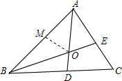 ∴∠BOM=180°-(∠AOM+∠AOE)=60°,∠BOD=∠AOE=60°∴∠BOM=∠BOD,由ASA判定△BOM≌△BOD∴BD=BM∴AB=AM+BM=AE+BD