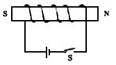 如图所示,当闭合开关S时,标出通电螺线管的N、S极。