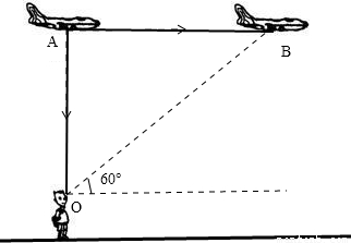 (4分)一架飞机水平匀速地从小明的头顶飞过。当他听到飞机发动机的声音从头顶正上方传来时,发现飞机在他前上方与地面约成60O角的方向。这架飞机的速度大约是声音的 倍。