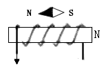 请标出图中通电螺线管的N极和导线中得电流方向。