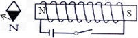 如图所示,请标出开关闭合后螺线管的南北极并画出放在其左侧的小磁针的转动方向.