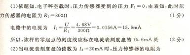 (1)该秤零起点(即踏板空载时)的刻度线应标在电流表刻度盘多少毫安处?