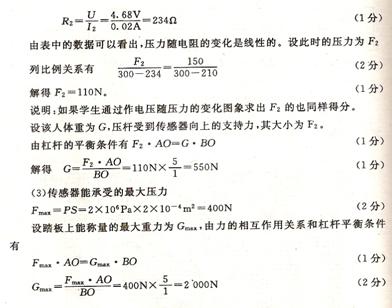 (3)若压杆与压力传感器之间的接触面积是2cm2,则该秤的最大称量值是多少?