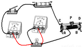 【答案】分析:(1)由灯泡的额定电压确定电压表的量程,电压表与灯泡并联.由图象上的电流值,确定电流表的量程,电流表与灯泡串联.