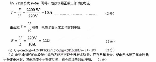(3)小明认为水吸收的热量是由电能提供的,于是他结合热水器铭牌的相关数据计算出从接通电源到指示灯熄灭需要的时间,明显小于1h20min ,为什么实际加热时间要长呢?请你帮助小明简单分析原因。