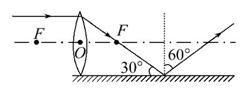 根据凸透镜对光线的折射作用可知:平行于主光轴的光线通过凸透镜后过焦点;由图知入射角为90°- 30°=60°,根据光的反射定律知,反射角等于60°。