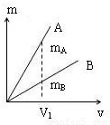 解答:解法一:在横坐标轴上取一体积V1,作出对应的A、B质量为mA、mB,可以看到mA>mB,则有ρA=>ρB=