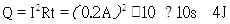 某导体的电阻是10W,通过它的电流是0.2A,通电10s,电流通过电阻产生的热量是_______J。