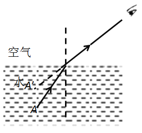 (1)[1][2]µ±¹â´ÓˮбÉäÈë¿ÕÆø£¬ÕÛÉä¹âÏßÔ¶Àë·¨Ïߣ¬ËùÒÔÕÛÉä½Ç´óÓÚÈëÉä½Ç¡£ÈçͼËùʾ£¬¿ê×ӵĶ˵ãAµÄ¹â´ÓË®ÉäÏò¿ÕÆø£¬½øÈëÈ˵ÄÑÛ¾¦£¬¶øÑÛ¾¦ÒÔΪ¹âÊÇÑØÖ±Ïß´«²¥µÄ£¬ËùÒÔÈËÈÏΪ¹âÊÇ´ÓA¡¯µã·¢³öµÄ¡£