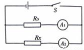 现有下列实验器材:一只已知阻值的定值电阻R0、两只电流表、电池、开关、足量的导线。请你利用这些器材设计实验,测出一只未知电阻Rx的阻值。