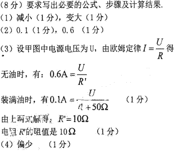 (3)Èçͼ¼×Ëùʾ£¬ÒÑÖªÓÍÏäÎÞÓÍʱ£¬½ðÊô»¬Æ¬ÔÚb¶Ë£ºÓÍÏä×°ÂúÓÍʱ£¬½ðÊô»¬Æ¬ÔÚa¶Ë(ÓÍÏäÈÝ»ýΪ50L)£®ÇëÄã·ÖÎö¼ÆËã³öͼ¼×ÖÐË𻵵ĵç×èR¡¯µÄ×èÖµÊǶà´ó£¿