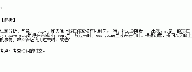 A. go B. have gone C. went D. was going