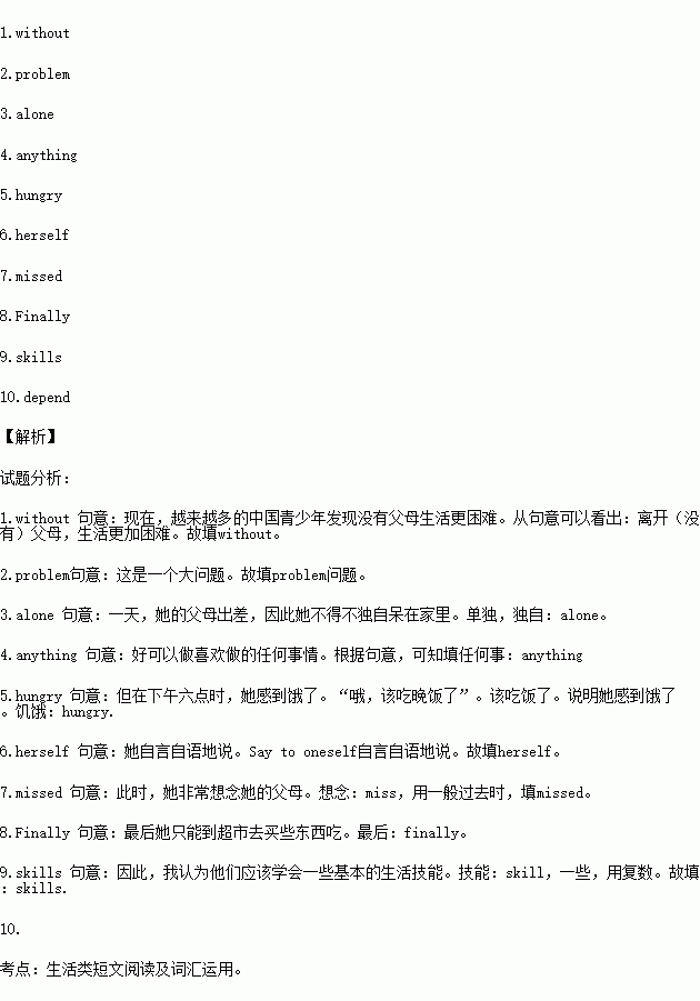 Many of teenagers are the same as Joy. So I think they should learn some basic life s 9. , like cooking, tidying up their rooms or dressing themselves. They shouldn’t d 10. too much on their parents.