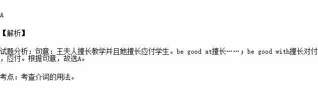 Mrs. Wang is good_______ teaching and she is good ______the students.