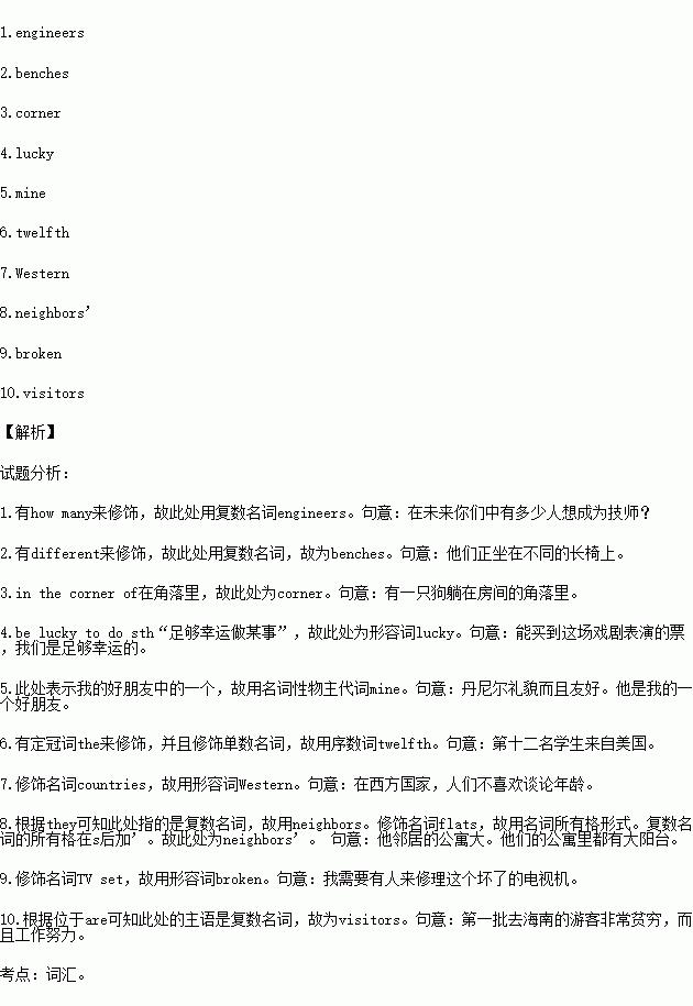 10.The first __________ (visit) to Hai Nan are very poor and hard-working.