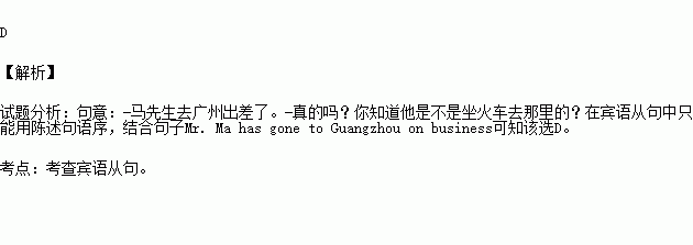 —Mr. Ma has gone to Guangzhou on business.