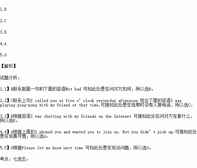 A: What a pity! (多么遗憾呀!) B: What about you? C: But nobody answered. D: What did you do yesterday afternoon. E: What were you doing yesterday afternoon. F: That’s great! G: No problem. |
