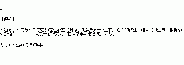 When Miss Li was walking past the classroom, she found Mario____ others’ homework. She really got angry.