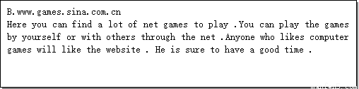阅读下列五个人的信息,从其后的网站中选出分别适合他们的网站。