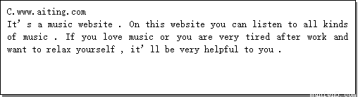 2.Alice studied hard for her math test yesterday . She is very tired today , and she wants to relax. She likes listening to music .