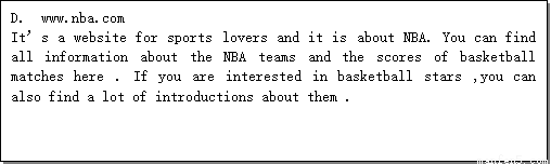 1.Tom is a super basketball fan . His hobby is playing basketball . And he likes Michal Jordan very much . He wants to get some information about him .