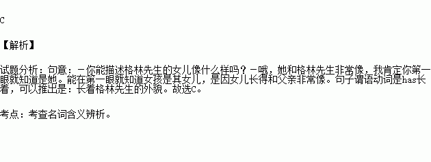 - Oh, she has the very_______ of Mr. Green. I'm sure you can know her at the first sight.