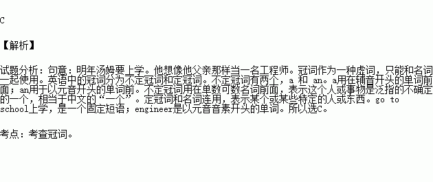 Next year Tom will go to _______school. He wants to be _______ engineer like his father.