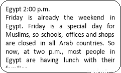 4.Two p.m. in Egypt is not a good time to telephone people in New Zealand, because in New Zealand ______.