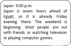 5.What time is it in New Zealand if it's 11:15 p.m. in Japan?