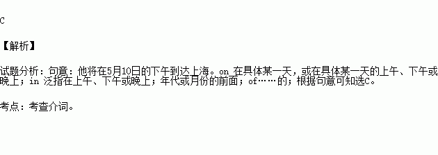 He'll arrive at Shanghai _______ the afternoon May 10th
