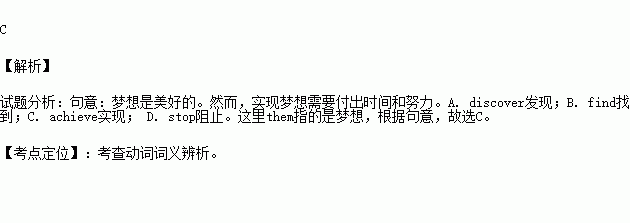 Dreams are beautiful. However, to ______ them needs lots of time and work.
