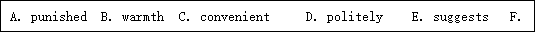 选择方框内的单词完成下列句子,使句子通顺、正确。每词限用一次