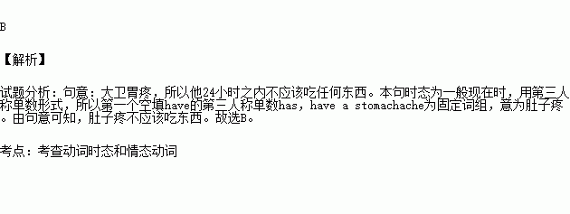 David _____ a stomachache, so he _____eat anything within 24 hours.
