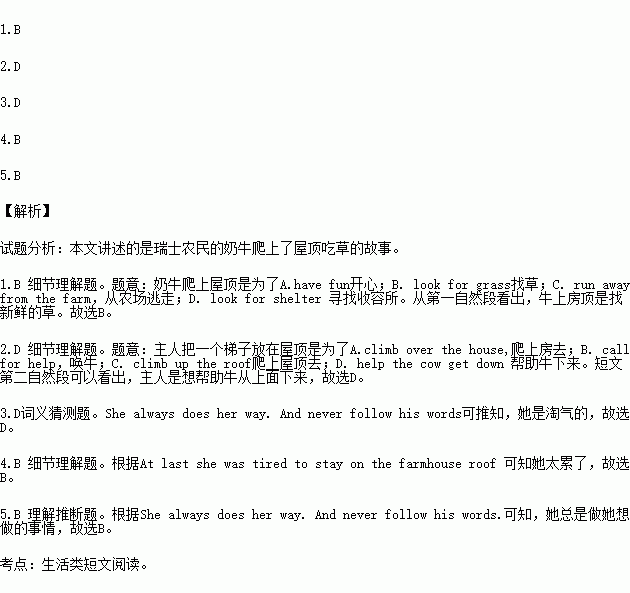 4.Why did the cow get down from the roof at last?